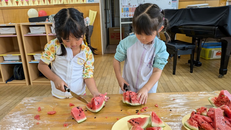 スイカの切り分けを手伝ってくれました!