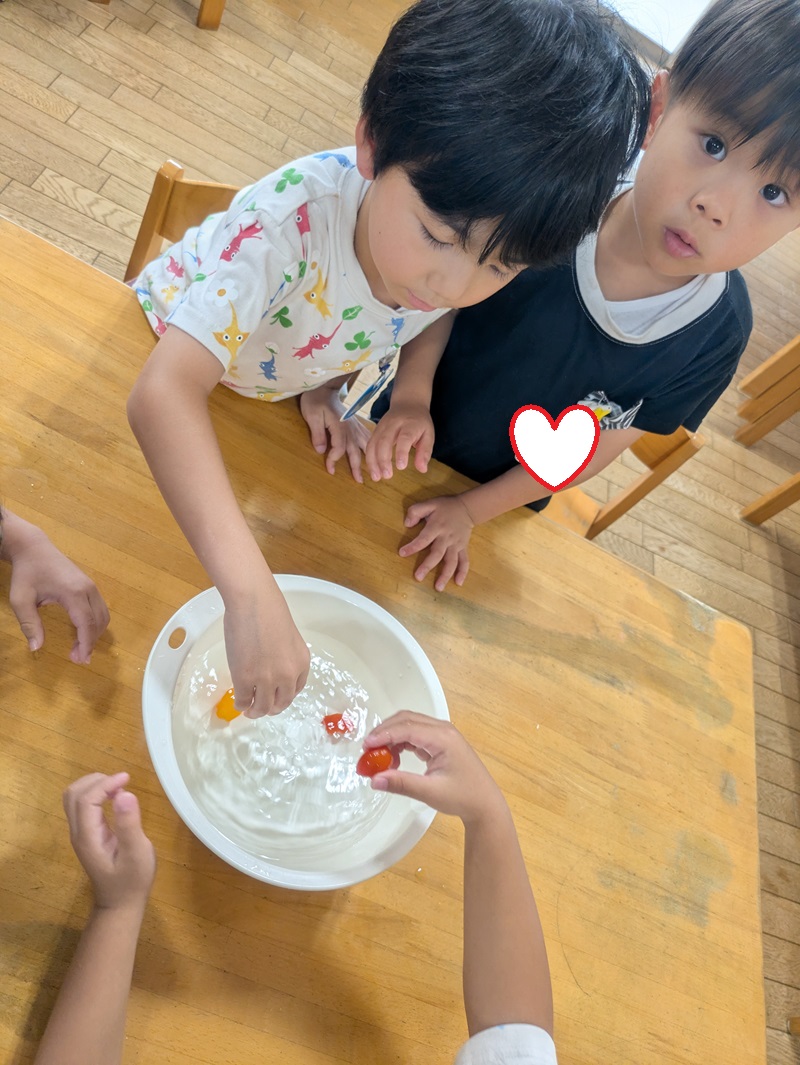 今週のこひつじ組年長さんは、プール遊びやスイカ割り、実験(トマトと氷)や製作を楽しみました!夏らしいことがたくさんできました♪