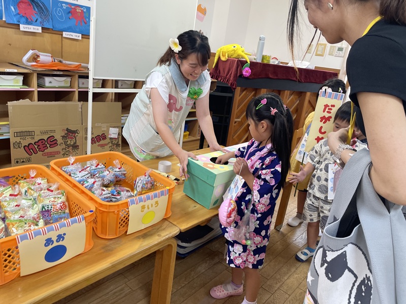 学年ごとに登園して、一緒に音頭を踊ったり、お店を楽しんだりしました✨