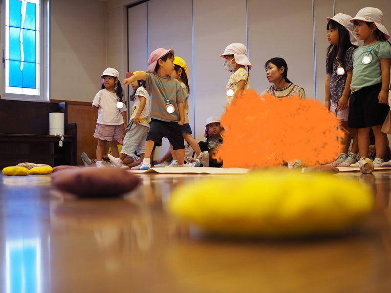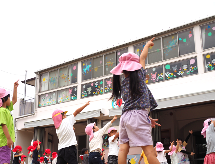 室内で練習していた行進・パンどろぼうきょうそう・外で練習していたダンスです!
