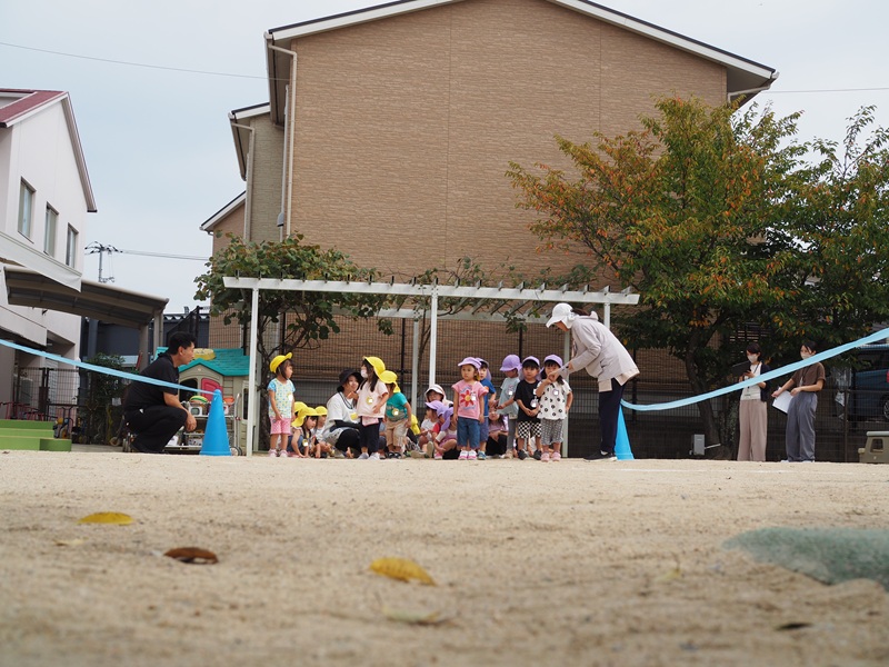かけっこでは先生にお名前を呼ばれてお返事をします!がんばれ~!!!