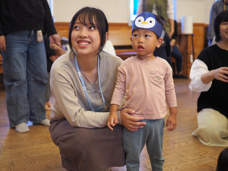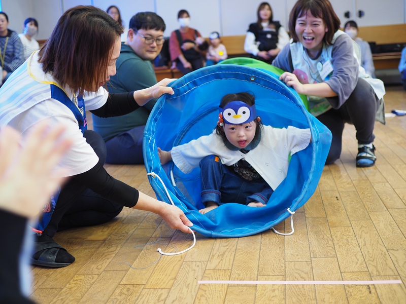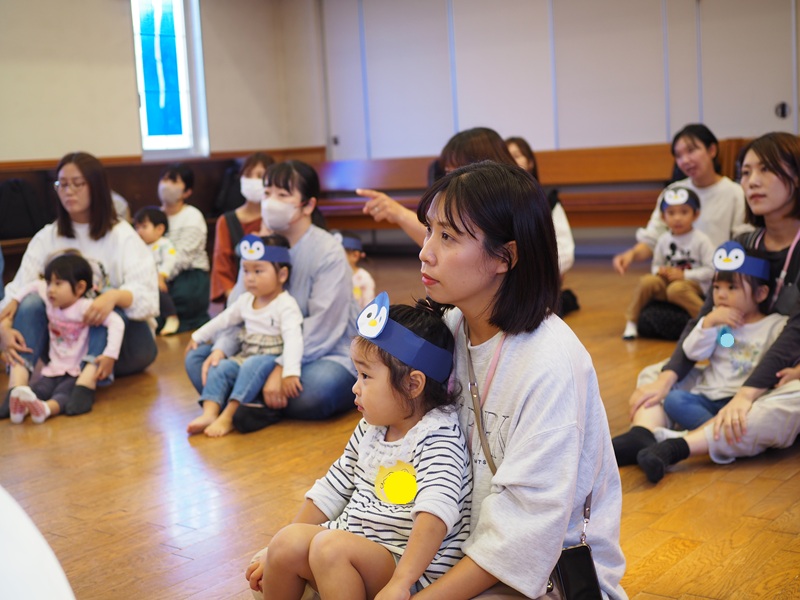 ぺんぎんたいそうの絵本を読んでからみんなでぺんぎん体操をして、親子でプログラムを楽しんでもらいました♪