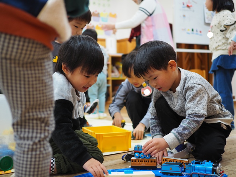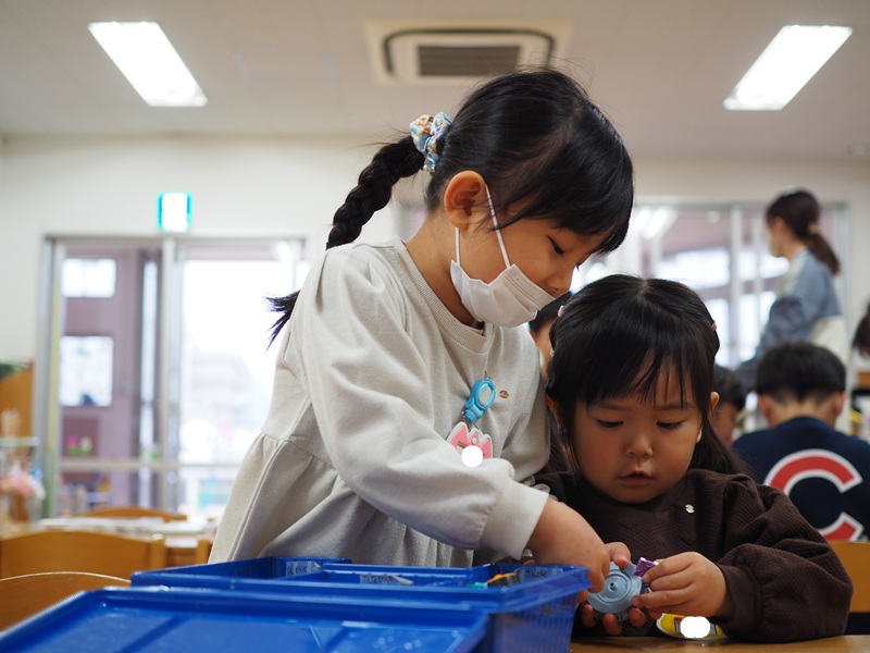 「みんなであそぼうかい」では、それぞれのお部屋の先生たちが各お部屋のおもちゃを準備してくれたり、製作コーナーを準備してくれたり…子どもたちは好きなお部屋に出発しますが、どんなものが用意されているかはお部屋に入るまでわかりません!