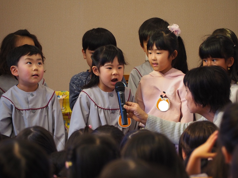 お礼拝の中で、「2学期にがんばったこと・たのしかったこと」を発表してくれた年長組さんもいました!
