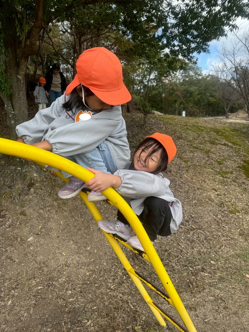 長い滑り台や、どんぐり拾いなど、仲良しのお友だちや先生と一緒に遊びを楽しんでいました!