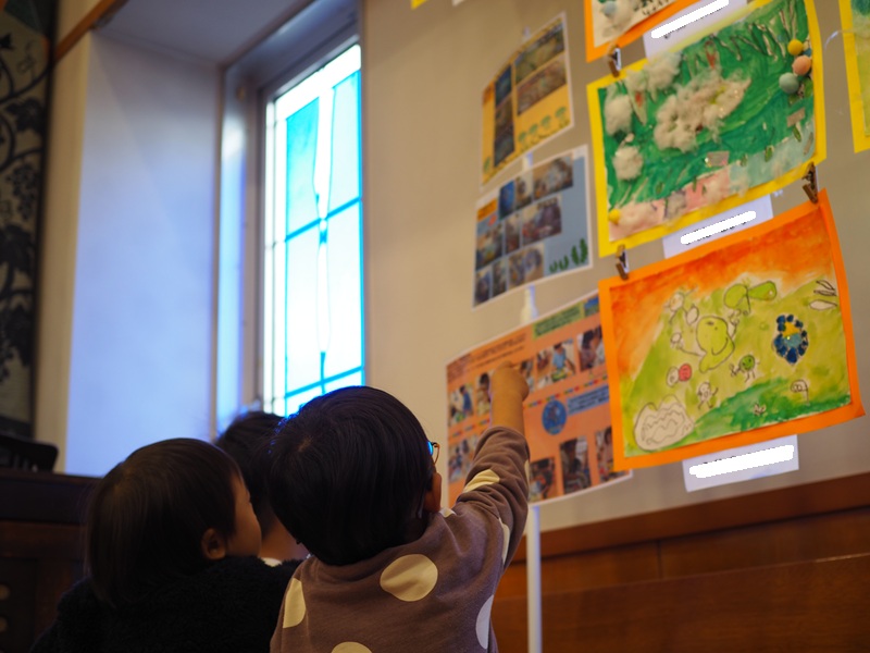 礼拝堂が子どもたちの作品でとってもにぎやかになりました!