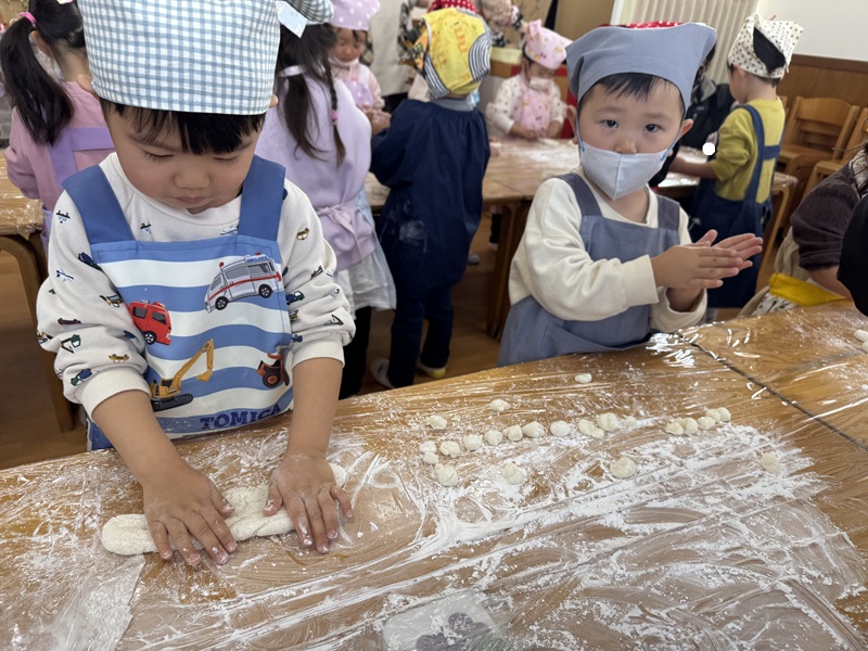 登園するときから「きょうはおもちつきだよね~!」と楽しみにしてくれていたり、うきうきのお顔でエプロンを見せてくれたり、かわいい表情をたくさん見ることができました!