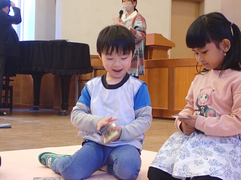 文字にすこしずつ興味を持っている年長組の子どもたちは、はりきってかるたに参加していましたよ!