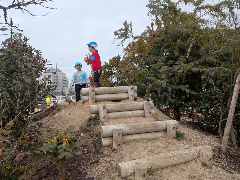 サムエル西条こどもの園さんのお庭にも、楽しそうな遊具がたくさんあり、西条ルーテル幼稚園の子どもたちは初めての場所でわくわく遊んでいる姿がみられました♡