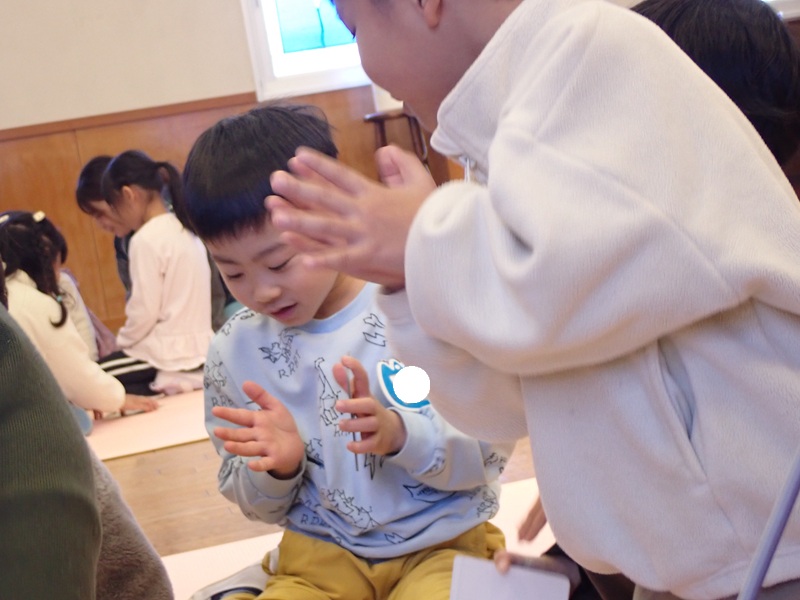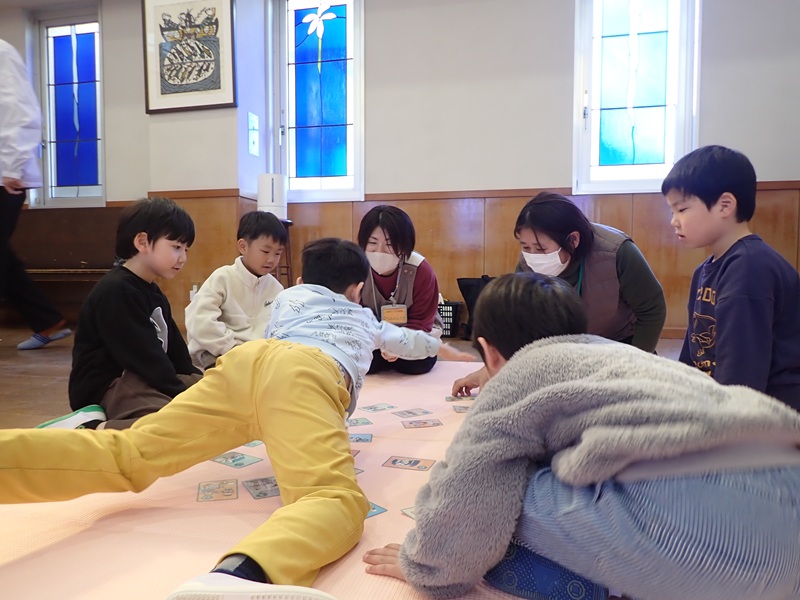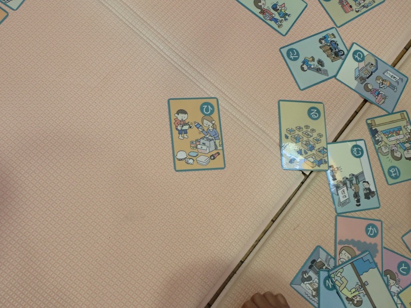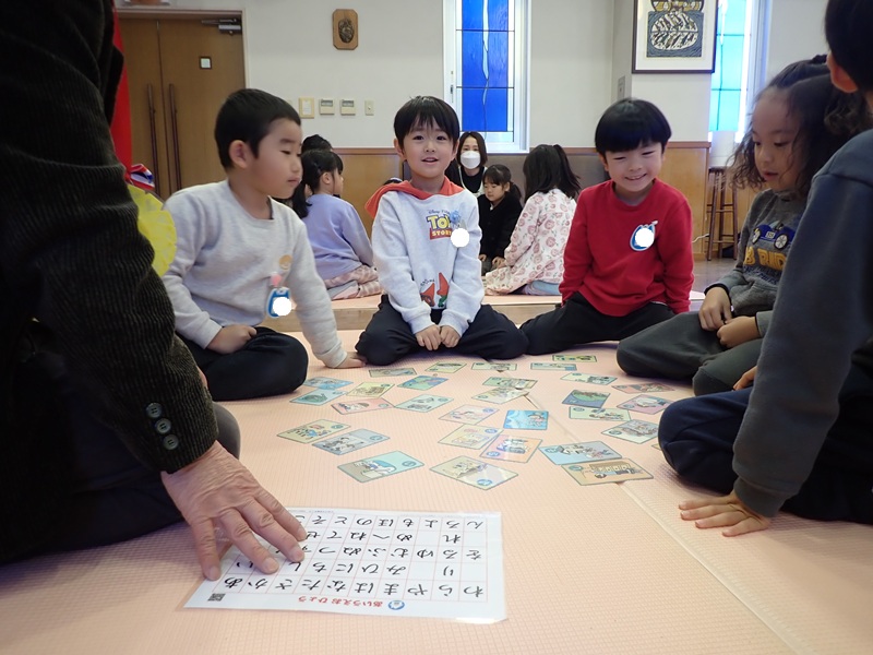 文字にすこしずつ興味を持っている年長組の子どもたちは、はりきってかるたに参加していましたよ!